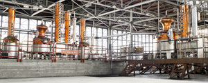 The distillery is at the former Alameda Naval Air Station, with a panoramic view of the San Francisco skyline.
